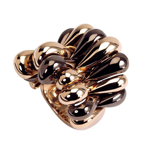 Кольцо de Grisogono, коллекция Gocce. Кольцо из розового золота 750 пробы с каплевидными элементами из розового золота с коричневым нанокерамическим покрытием.