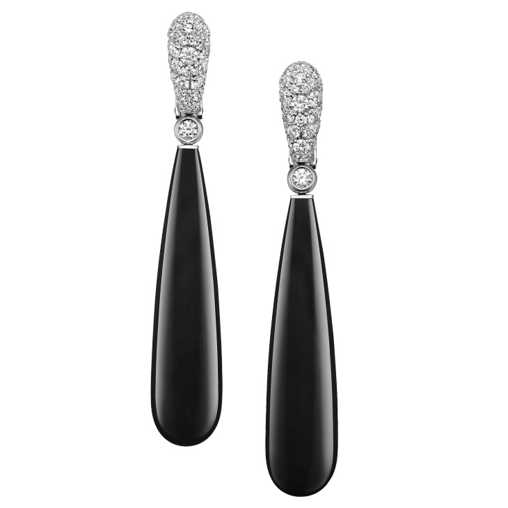 Серьги de Grisogono, коллекция Gocce. Серьги из белого золота с белыми бриллиантами и ониксом.