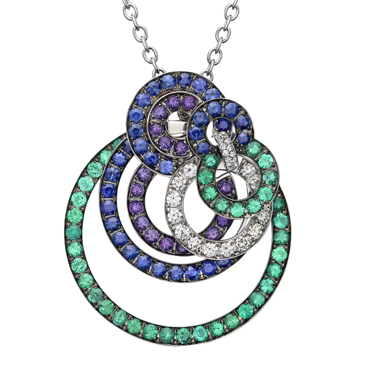 Подвеска de Grisogono Gypsy, белое золото, бриллианты, изумруды, сапфиры, аметисты
