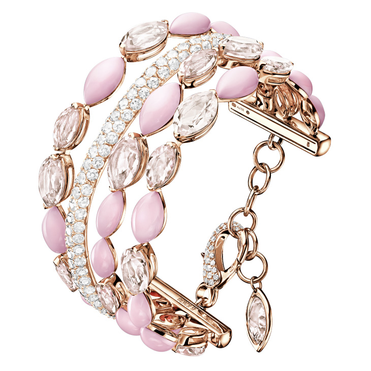 Браслет de Grisogono, коллекция Melody Of Colours. Браслет из розового золота с морганитом огранки «маркиза», опалами огранки «кабошон» и белыми бриллиантами.