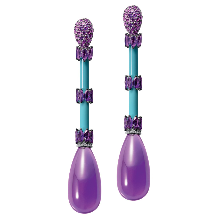 Описание Серьги de Grisogono Melody Of Colours, Белое золото, бриллианты, аметисты, бирюза