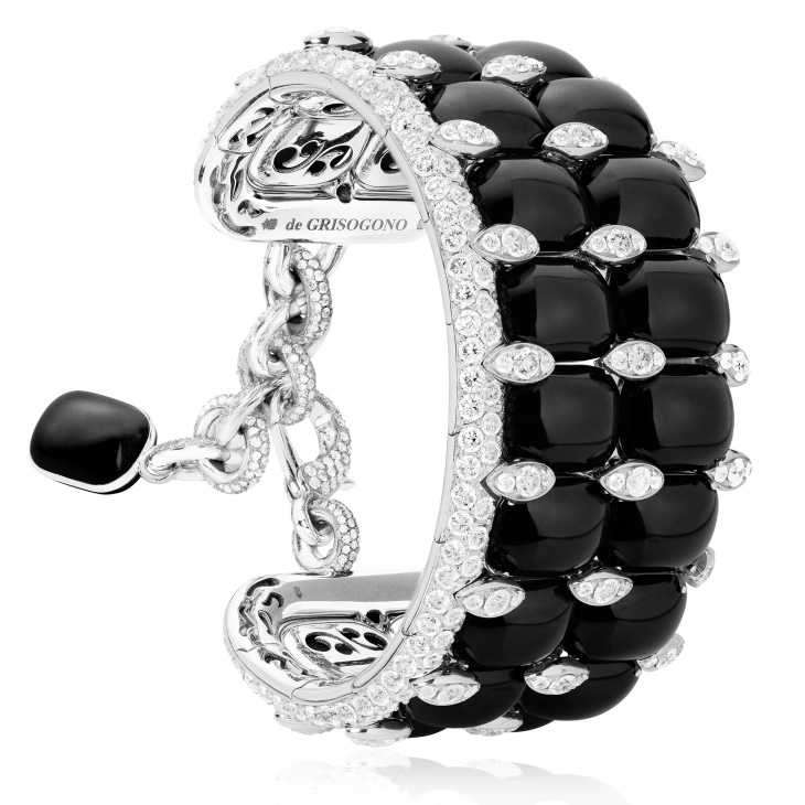Браслет de Grisogono, коллекция Melody Of Colours. Браслет из белого золота, 26 черных нефритов, 853 белых бриллианта.