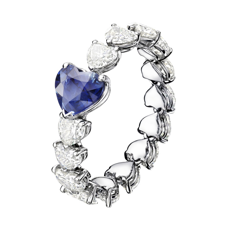 Кольцо de Grisogono, коллекция Cuore. Кольцо из белого золота 750 пробы c белыми бриллиантами и синим сапфиром в виде сердца.