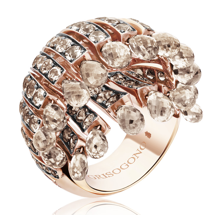 Кольцо de Grisogono, коллекция Frange. Кольцо из розового золота 750 пробы c коричневыми бриллиантами и коричневыми бриллиантами огранки «бриолет».