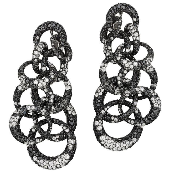 Серьги de Grisogono, коллекция Anelli. Серьги из белого золота 750 пробы и титана с белыми и черными бриллиантами.