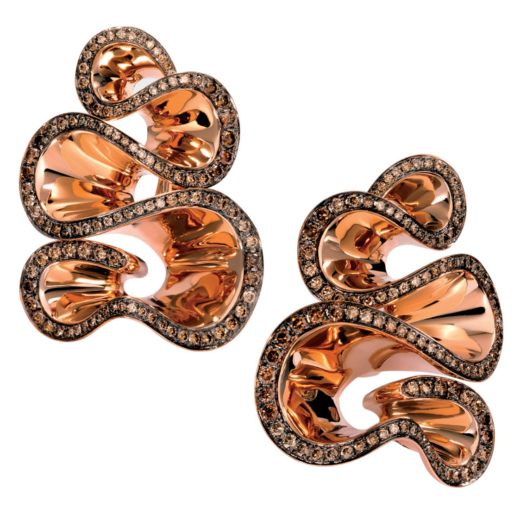 Серьги de Grisogono, коллекция Zigana. Серьги из розового золота 750 пробы с коричневыми бриллиантами.