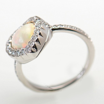 Белое золото, опал, бриллианты (общий вес - 0,35 карат).