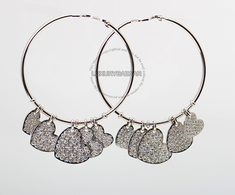 Dior 18K White Gold & Diamond Hoop Heart Earrings