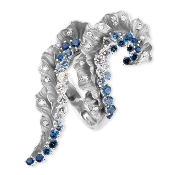 Описание Кольцо Magerit Gea Aurea, Белое золото, бриллианты, сапфири, агаты.