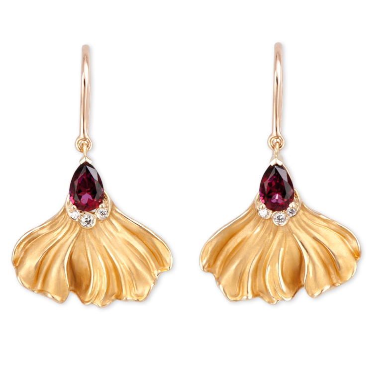 Описание Серьги Magerit Gea Folia, желтое золото, бриллианты, агат