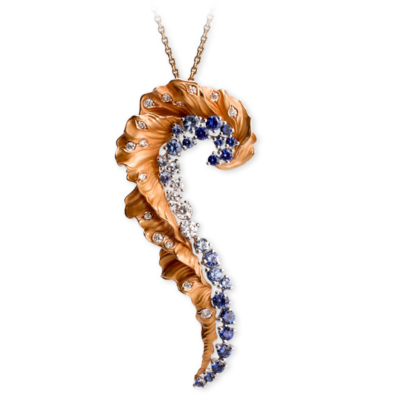 Описание Подвеска Magerit Gea Aurea, желтое золото, бриллианты, сапфири, агаты.