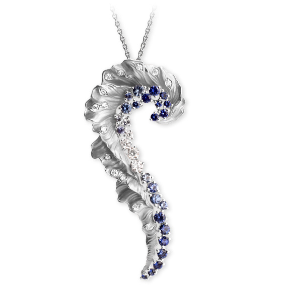 Подвеска Genus из коллекции Magerit Gea. Подвеска из белое золота с белыми бриллиантами, сапфирами и агатами.