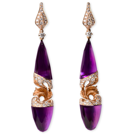 Серьги Germina из коллекции Magerit Gea. Серьги из желтого золота с бриллиантами и аметистами.