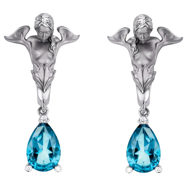 Описание Серьги Magerit Gea Virentia, желтое золото, бриллианты 0,03 карат, топазы