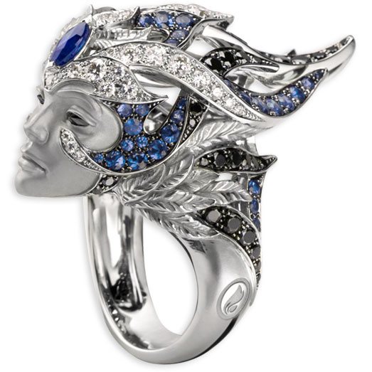 Кольцо Magerit Odile из коллекции Hechizo. Кольцо из белого золота с белыми и черными бриллиантами и сапфирами.