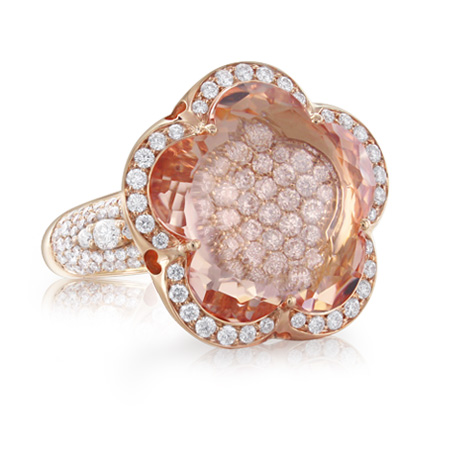 Кольцо Pasquale Bruni из коллекции Bon Ton Haute Couture. Кольцо из розового золота с морганитом в виде цветка и белыми бриллиантами.