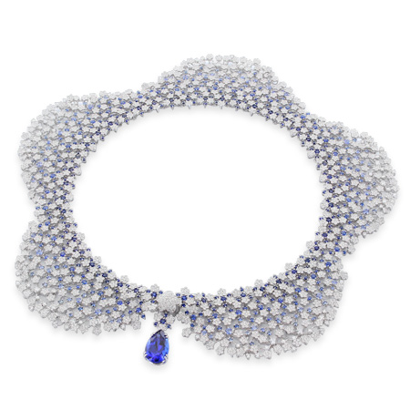 Колье Pasquale Bruni из коллекции Flowers in Bloom. Колье из белого золота с танзанитом, голубыми сапфирами и белыми бриллиантами.