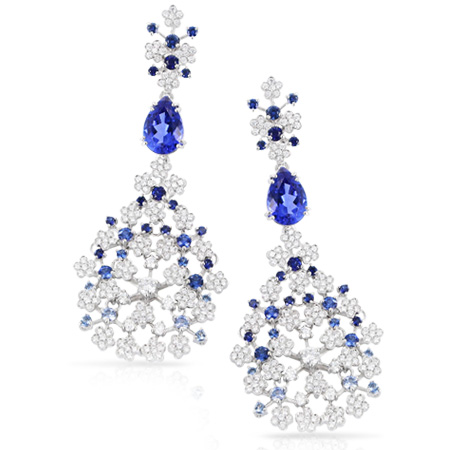 Серьги Pasquale Bruni из коллекции Flowers in Bloom. Серьги из белого золота с танзанитом, голубыми сапфирами и белыми бриллиантами.