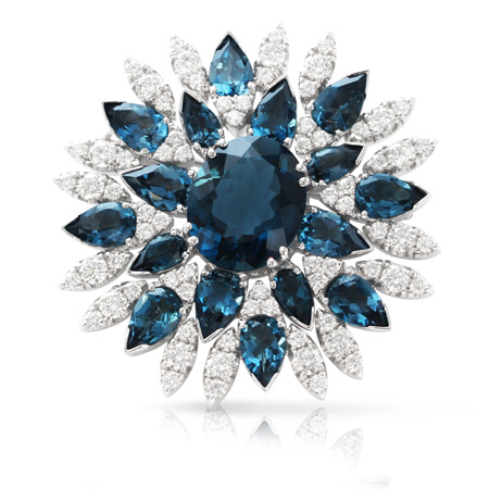 Брошь Pasquale Bruni из коллекции Ghirlanda. Брошь из белого золота с голубыми топазами "Лондон" и белыми бриллиантами.