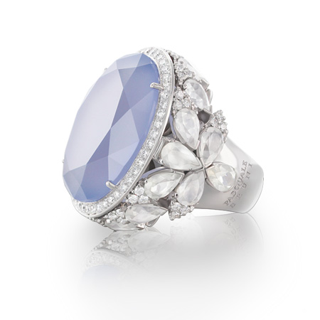 Кольцо Pasquale Bruni из коллекции Ghirlanda. Кольцо из белого золота с голубым халцедоном, белыми агатами и белыми бриллиантами.