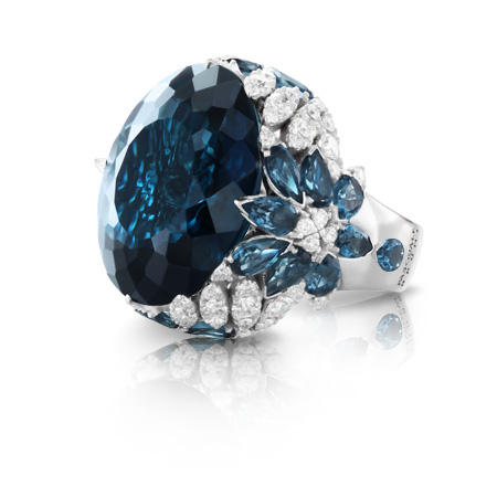 Кольцо Pasquale Bruni из коллекции Ghirlanda. Кольцо из белого золота с голубыми топазами "Лондон" и белыми бриллиантами.
