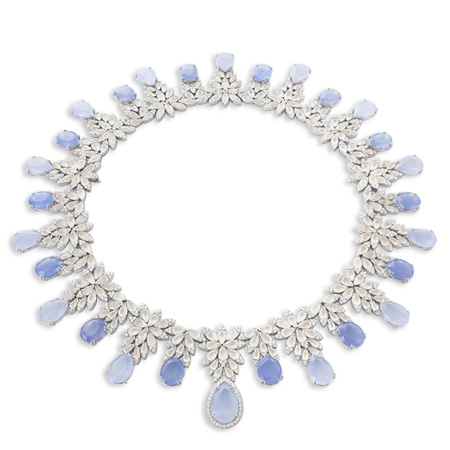 Колье Pasquale Bruni из коллекции Ghirlanda. Колье из белого золота с голубым халцедоном, белыми агатами и белыми бриллиантами.