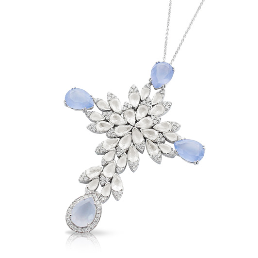 Подвеска Pasquale Bruni из коллекции Ghirlanda. Подвеска из белого золота с голубым халцедоном, белыми агатами и белыми бриллиантами.
