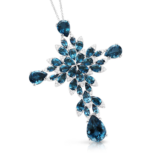 Подвеска Pasquale Bruni из коллекции Ghirlanda. Подвеска из белого золота с голубыми топазами "Лондон" и белыми бриллиантами.