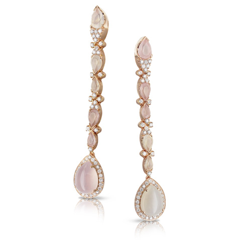Серьги Pasquale Bruni из коллекции Ghirlanda. Серьги из розового золота с Лунным камнем, розовым кварцем и белыми бриллиантами.