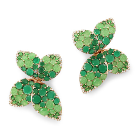 Серьги Pasquale Bruni из коллекции Secret Gardens Haute Couture. Серьги из розового золота с белыми бриллиантами, нефритом, зеленым агатом и цаворитом.