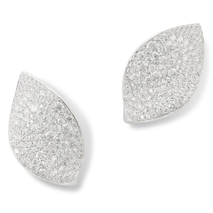 Серьги Pasquale Bruni из коллекции Giardini Segreti. Серьги из белого золота с белыми бриллиантами. Изогнутые линии листков создают чувственный цветочный мотив характерный для серии Pasquale Bruni Giardini Segreti.