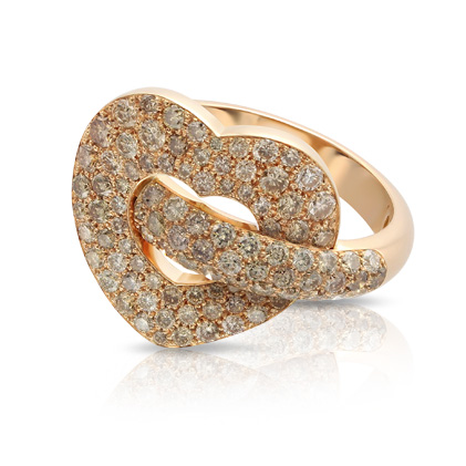 Кольцо Pasquale Bruni из коллекции Make Love. Кольцо из розового золота с бриллиантами цвета "шампань".