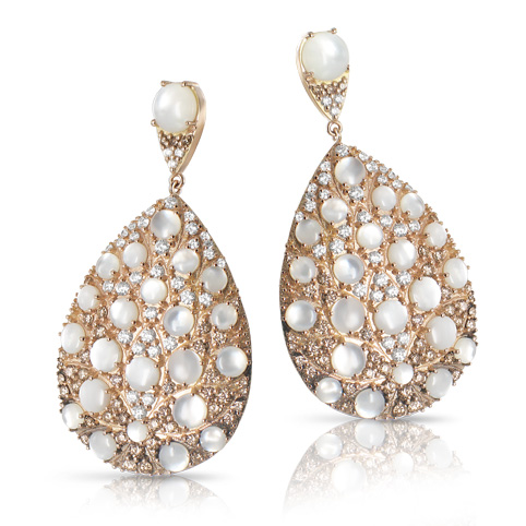 Серьги Pasquale Bruni из коллекции Mandala. Серьги из розового золота с жемчугом, белыми и коньячными бриллиантами.