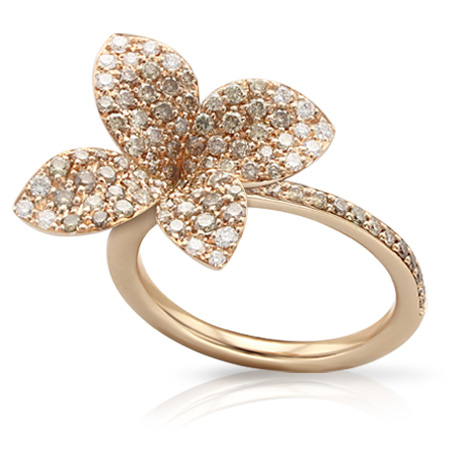 Кольцо Pasquale Bruni из коллекции Petit Garden. Кольцо из розового золота с белыми бриллиантами и бриллиантами цвета "шампань".