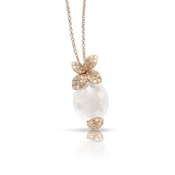 Подвеска Pasquale Bruni из коллекции Petit Secret. Подвеска из розового золота с молочным кварцем, белыми бриллиантами и бриллиантами цвета "шампань".