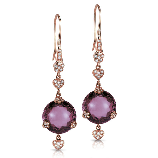 Серьги Pasquale Bruni из коллекции Sissi. Серьги из розового золота с аметистами и белыми бриллиантами.