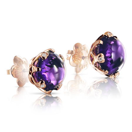 Серьги Pasquale Bruni из коллекции Sissi. Серьги из розового золота с аметистом и белыми бриллиантами.