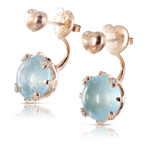 Серьги Pasquale Bruni из коллекции Sissi. Серьги из розового золота с голубыми топазами и белыми бриллиантами.