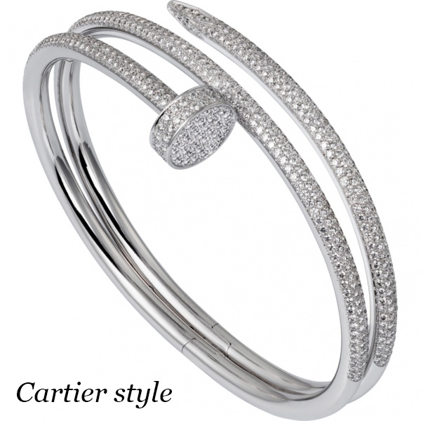 Описание Браслет сделан в стиле Cartier Juste Un Clou, белое золото 750 пробы, бриллианты 3,61ct.