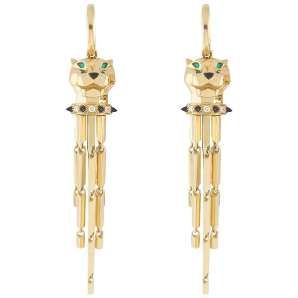 Описание Panthere de Cartier earrings, yellow gold, diamonds, onyx, tsavorite