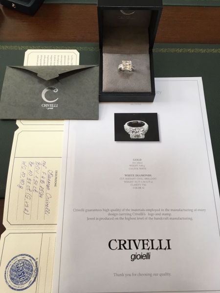 Описание Кольцо Crivelli с бриллиантом 10,37ct, белое золото 750, общая вес других бриллиантов 1,54ct и 0,75ct.