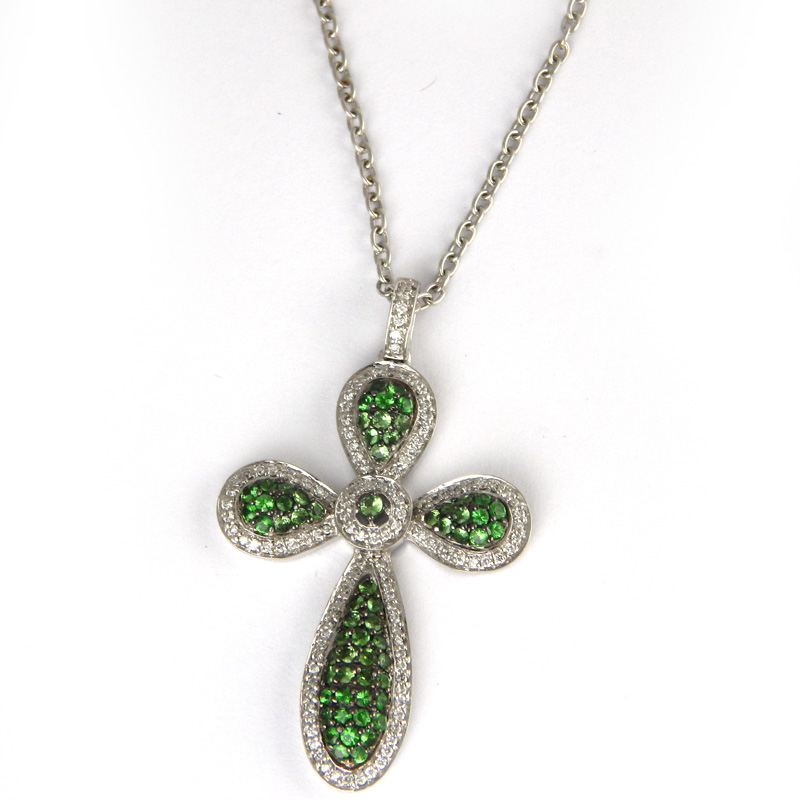 Описание Крестик Crivelli, белое золото 750, бриллианты, изумруды