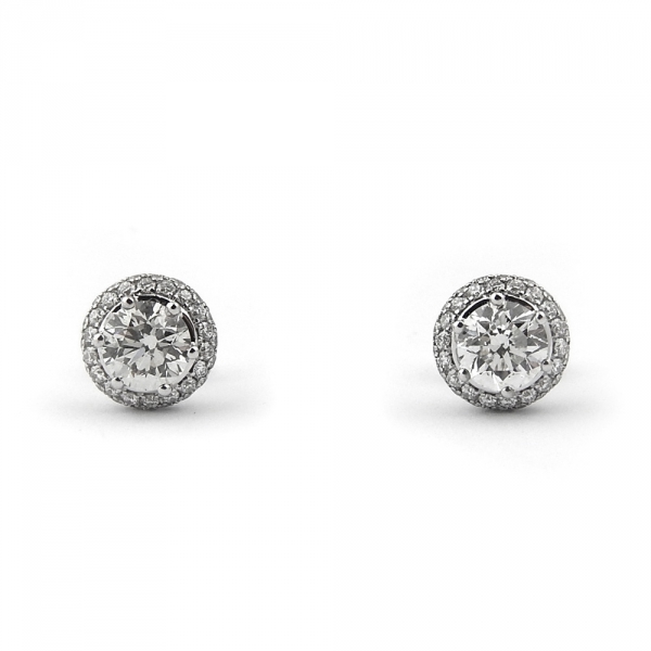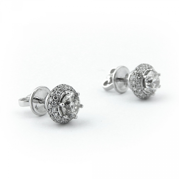 Серьги-пусеты DAMIANI, белое золото 750, бриллианты. Центральный бриллиант 0.75 ct, обсыпка 1.03 ct, (H/VS2)
