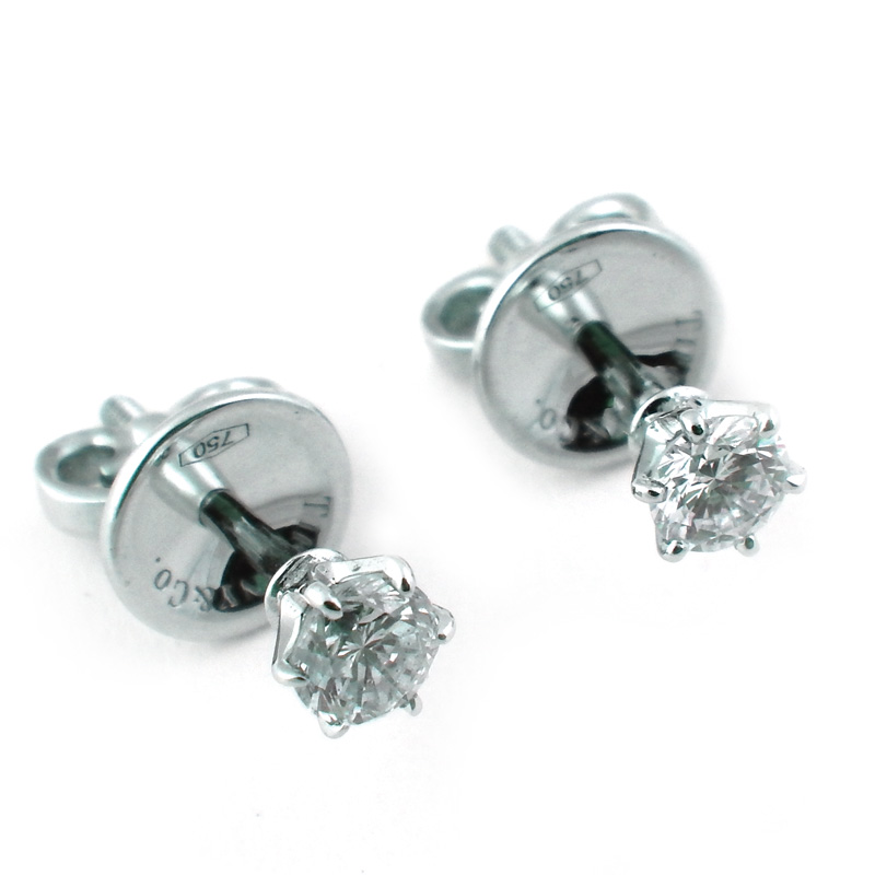 Описание Серьги-пусеты Tiffany & Co с бриллиантами (0,2ct x 2, GVS1), белое золото 750