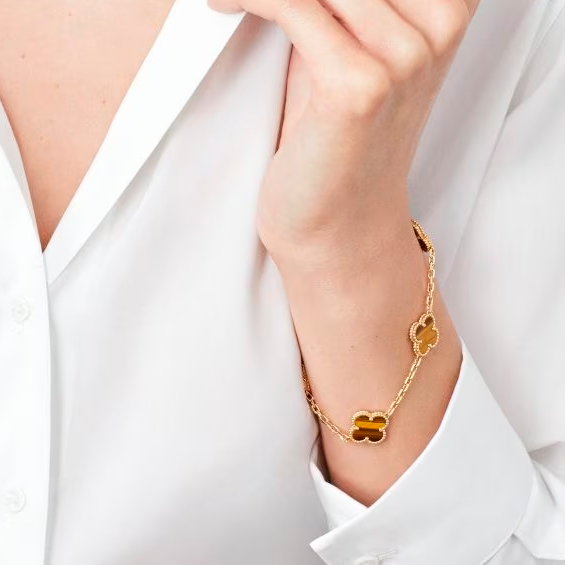 Описание Браслет Van Cleef & Arpels Vintage Alhambra, желтое золото, тигровый глаз