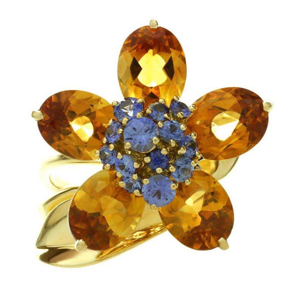 Описание Кольцо Van Cleef & Arpels Hawaii, желтое золото, сапфиры, лимоны.