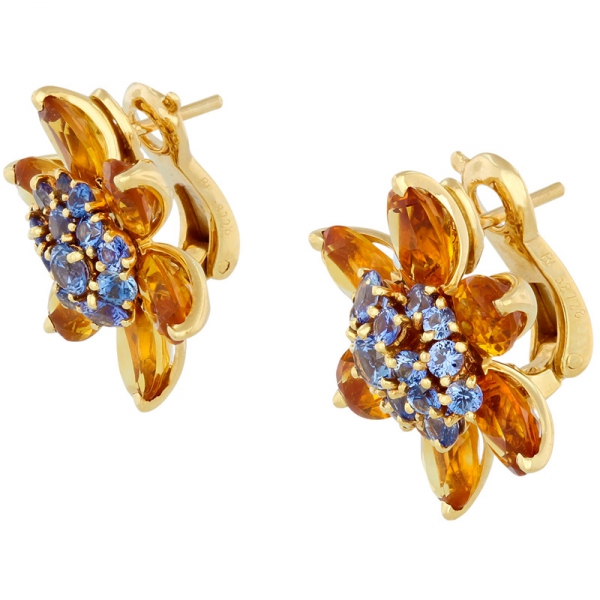 Описание Серьги Van Cleef & Arpels Hawaii, желтое золото 18 карат, сапфиры (1ct), цитрины (3ct)