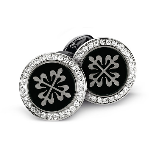 Описание Запонки Patek Philippe Cuff Links Calatrava, белое золото 18К, бриллианты, оникс