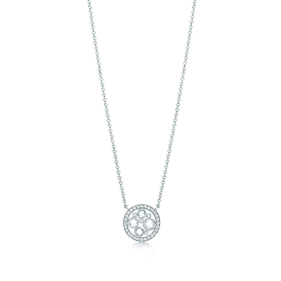 Подвеска Tiffany Cobblestone ref: 25922468 из платины с бриллиантами в огранке «Роза» и круглыми бриллиантами. На цепочке длиной 40,5 см.