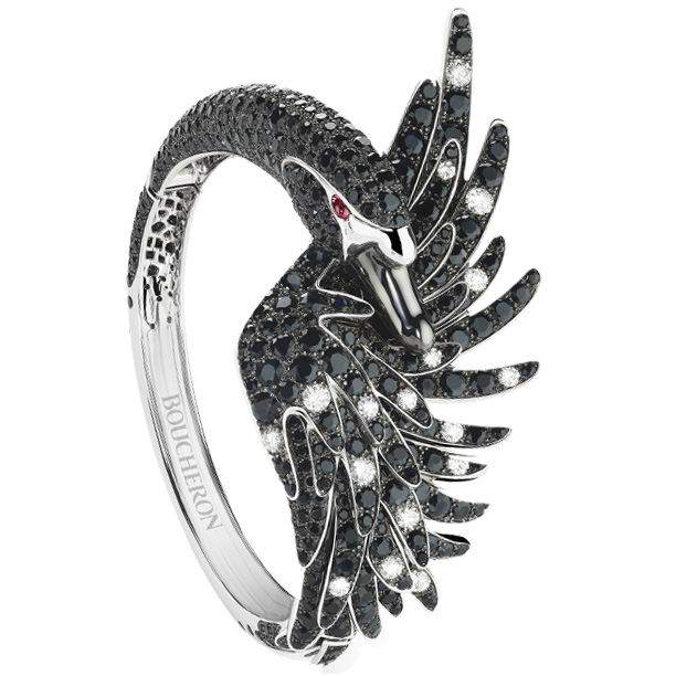 Опис Браслет Boucheron Animals, біле золото 750/1000, чорні сапфіри 27,32ct, діаманти 1,29ct, рубіни 0,21ct